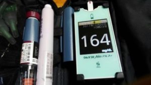 朝食前血糖値は少し高く、164mg/dlでした。夕食のカロリーは、僅か900キロカロリーくらいだと思います。