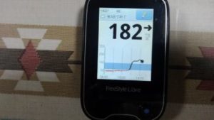 ・朝食前血糖値は少し高く、182mg/dlでした。(昨夕のカレーうどんはカロリーが低いと思いインスリン注射量が少なくした結果です。)