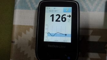 ・.夕朝食前血糖値は良好で、126mg/dlでした。(低血糖が多い日でした。夕食前がベストと言えます)