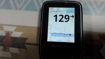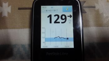 ・.夕朝食前血糖値はほぼ良好で、129mg/dlでした。(低血糖が多い日でした。夕食前がベストと言えます)