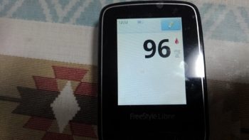 ・昼食前血糖値は良好で、96mg/dlでした。(仕事がハードのため、朝食時のインスリン注射量を減らしました。)