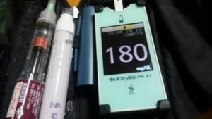 ・昼食前血糖も少し高く、180mg/dlでした。