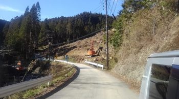 また、毎年被害が大きい、台風被害のために道路も拡幅されています。崖崩れ防止のため、山側を削らずに川に道路を作る作業となっています。
