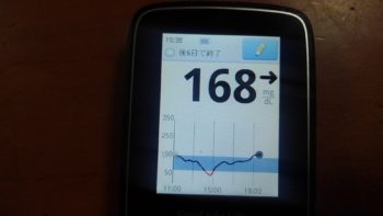 ・夕食前血糖値は少し高く、168mg/dlでした。