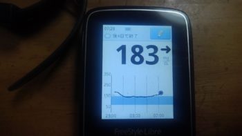 ・朝食前血糖値は少し高く、183mg/dlでした。