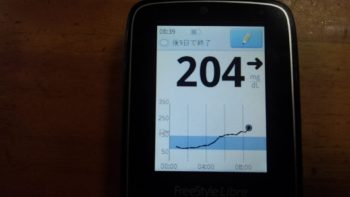 夕食前血糖値は高く、204mg/dlでした。