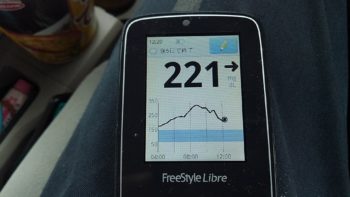 ・昼食前血糖値は高く、221mg/dlでした。