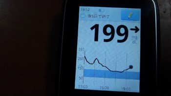 夕食前血糖値は高く、199mg/dlでした。