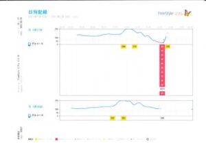 毎日24時間測定できるリブレのおかげですが、この値を参考にして、インスリン注射量を決めているつもりですが、グラフの結果通りにいかないのが、1型糖尿病の宿命です。