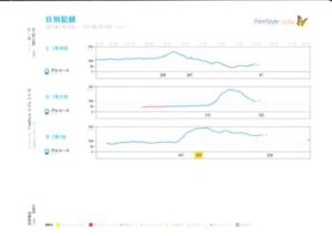 本日のデータ(朝食前血糖値を解かりやすくするため、昨夕からとします)