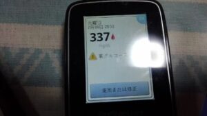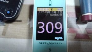 ・夕朝食前血糖値は高く、309mg/dlでした。(昼食時のインスリン注射量が低すぎました。)