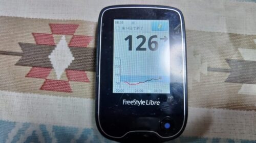 ・朝食前血糖値は良好で、126mg/dlでした(昨夕食のカロリーインスリン注射量は良かったということです)。