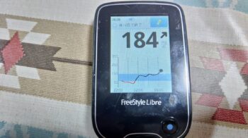 ・朝食前血糖値は少し高く、184mg/dlでした(昨夕食はカロリーが高かったようです。ご飯の量が多かったようです)。