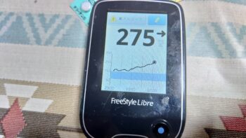 ・朝食前血糖値は高く、275mg/dlでした(昨夕食はカロリーが高いのと、量も多かったようです)。