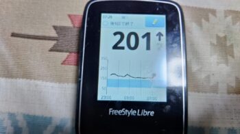 ・朝食前血糖値は高く、201mg/dlでした(昨夕食はカロリーが高いのと、量も多かったようです)。