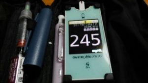 朝食前血糖値は高く、245mg/dlでした。夕食のカロリーは、900〜1000キロカロリーくらいだと思います。