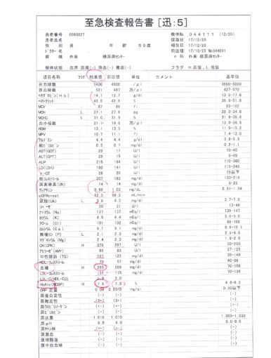 クレアチニンの値も正常値内に収まっているので腎機能が少し良くなったようです。
