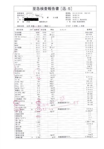 血液検査結果報告書