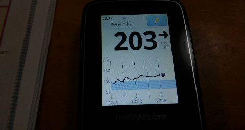 ・夕食前血糖値は高く、203mg/dlでした。