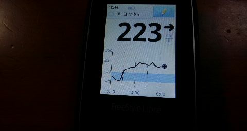 ・夕食前血糖値は高く、223mg/dlでした。