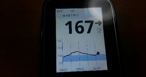 ・夕食前血糖値は少し高く、167mg/dlでした。