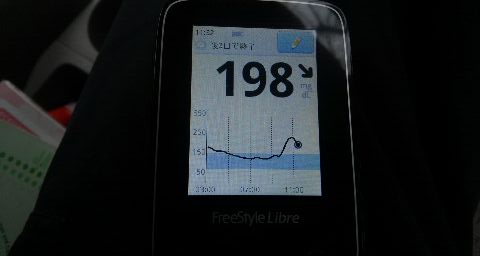 ・昼食前血糖値は高く、198mg/dlでした。