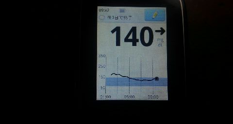 ・朝食前血糖値は少し高く、140mg/dlでした。