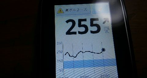 ・朝食前血糖値は高く、255mg/dlでした。