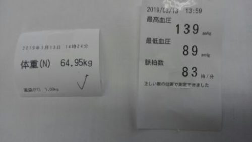 血圧が、少し高いことを指摘されました。ストレスが溜まっていることもあるかもしれません。体重は実際は63.5Kgです。2か月前より、2Kg増えました。食事量が多く、インスリン量も増えた結果が見えています。