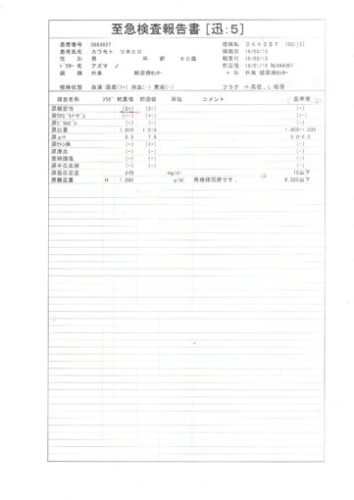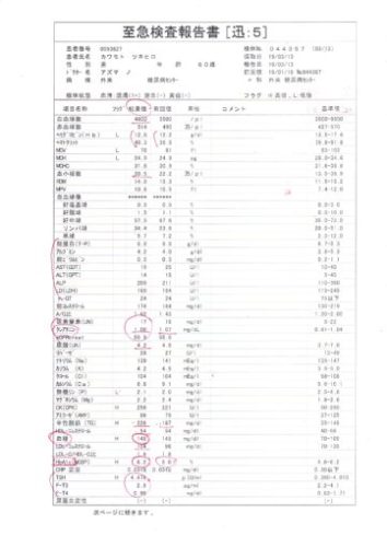 クレアチニンの値は正常値となりました。水分をよくとっているからだと思います。