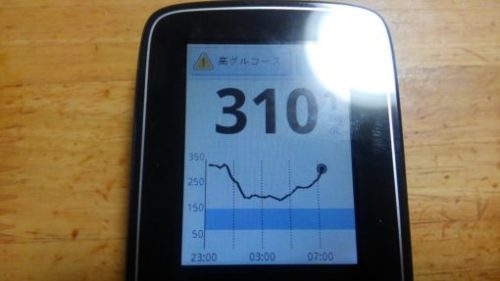 ・朝食前血糖値は高く、310mg/dlでした。