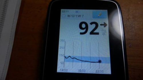 ・夕食前血糖値は低く、92mg/dlでした。