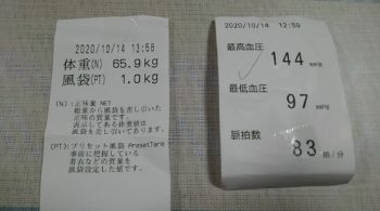 血圧も、高い値となりました。体重は実際は65Kgと前回と変わりませんでした。
