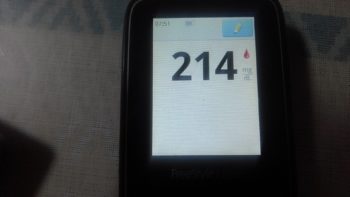 朝食後血糖値は、4時間後にかかわらず、高く、217mg/dlと高血糖でした。毎日の昼食前血糖値が高いのですが、食パン一枚にしては、高いほうです。