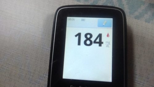 ・朝食前血糖値は少し高く、184mg/dlでした。
