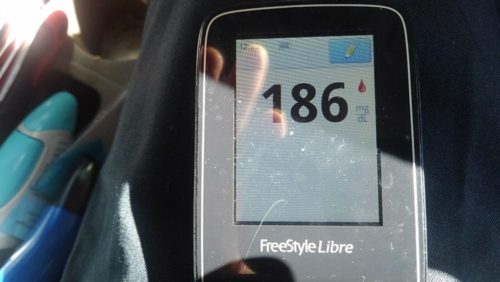 ・昼食前血糖値は少し高く、186mg/dlでした。