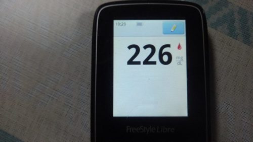 ・夕前血糖値は高く、226mg/dlでした。