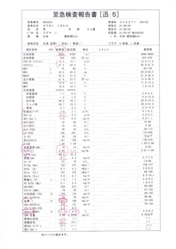 検査時血糖値は、血液検査前まで昼食を我慢していました。朝食後4時間ほどと現場作業をしていたにも関わらず、201mg/dlと高血糖でした。