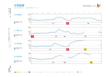 本日のデータ(食前血糖値を分かりやすくするため、昨夕からとします)