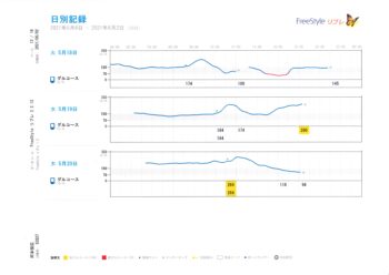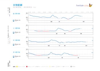 毎日24時間測定できるリブレのおかげですが、この値を参考にして、インスリン注射量を決めているつもりですが、グラフの結果通りにいかないのが、1型糖尿病の宿命です。