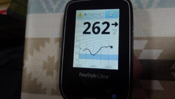 ・夕朝食前血糖値は高く、262mg/dlでした(昼食時の牛丼は、やはり高カロリーでした)。