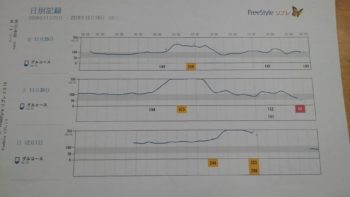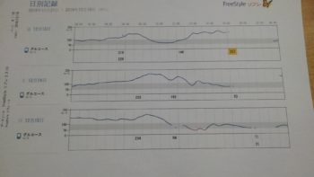 インスリン注射量を増やしてはいましたが、まだ足らないよう結果が続いています。それでもこの程度なら「良好です。」と担当医に褒められました。