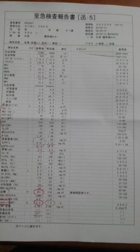 クレアチニンの値が少し下がりました。どちらにしても高血圧に気を付けないといけません。