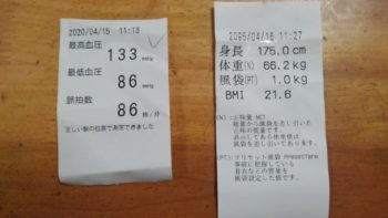 血圧は正常範囲で一安心でした。体重は実際は66Kgと前回より、若干増えました。