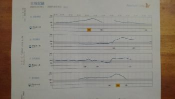 四日分の血糖値と食事に合せたインスリン注射量です。