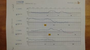 1ケ月分の細かいグラフです。高血糖や低血糖の時間込ごとの結果が、一目瞭然です。