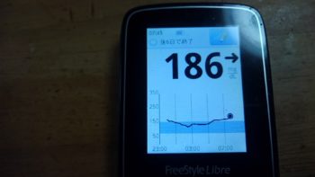 ・朝食前血糖値は少し高く、186mg/dlでした。