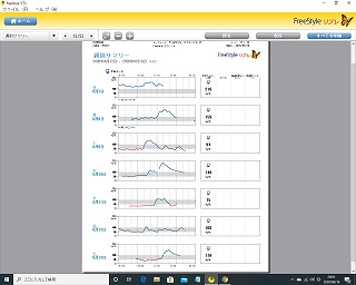 1か月間のグルコース値のグラフです。毎日24時間測定できるリブレのおかげですが、この値を参考にして、インスリン注射量を決めているつもりですが、グラフの結果通りにいかないのが、1型糖尿病の宿命です。
