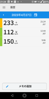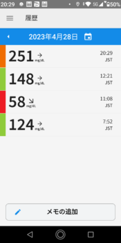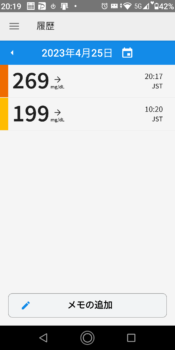 | 2023-04-25 | 血糖値 | 食事 | 超即効性インスリン 注射量 | 持続性インスリン 注射量 |