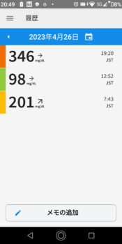 | 2023-04-26 | 血糖値 | 食事 | 超即効性インスリン 注射量 | 持続性インスリン 注射量 |